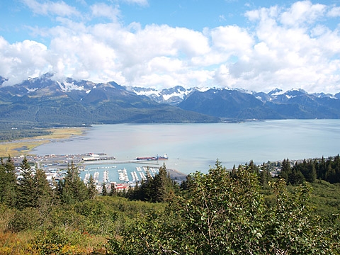 Man kann den ganzen Hafen von Seward und sein Hinterland sehen.